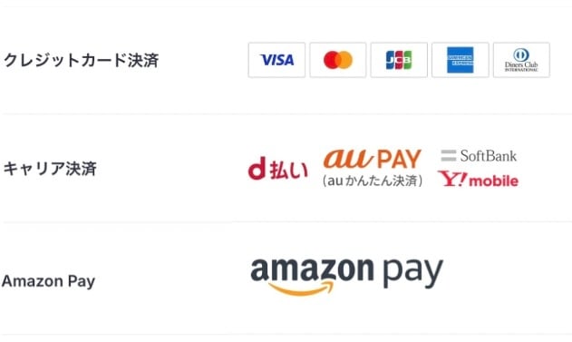 A.クレジットカード、キャリア決済、Amazon Payがご利用いただけます。
